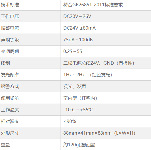 具有2種報(bào)警聲調(diào),聲壓級(jí)高、功耗低、工作可靠